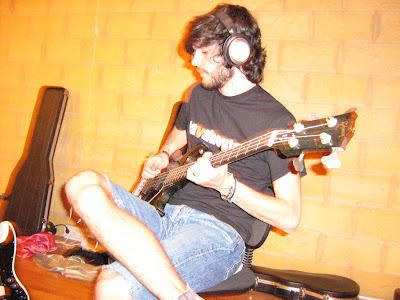 El siguiente en pasar a grabar, como el día antes, fue Jon. Grabó los bajos en un santiamén y enseguida se puso Rober con las guitarras. No pude quedarme a todo, porque el jueves tenía que trabajar bastante temprano, así que no sé cómo acabó la cosa el segundo día de grabación. Pero este viernes espero llegar por allí a eso de las 20.00 y ver las últimas horas del día y con el fin de semana intentaré escuchar lo que hayan hecho estos días.